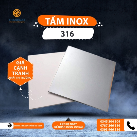 Inox 316 và 316Ti là lựa chọn lý tưởng cho những ứng dụng yêu cầu tính năng chống ăn mòn cao và độ bền vượt trội. Với chất lượng hàng đầu từ Châu Âu, tấm inox 316 sẽ đáp ứng mọi nhu cầu khắt khe nhất trong ngành công nghiệp. Hãy liên hệ với Inox Thành Đạt để được tư vấn và nhận báo giá sản phẩm inox 316 chất lượng nhất cho dự án của bạn! Sự hài lòng của bạn là ưu tiên hàng đầu của chúng tôi.